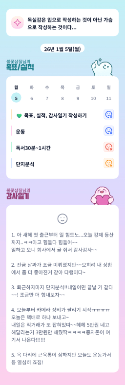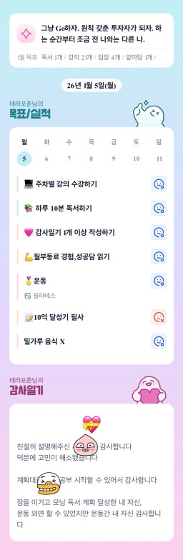 [갱투] 1.4.~1.5. 실적 / 1.6. 목표 / 감사일기