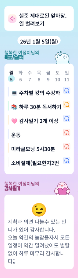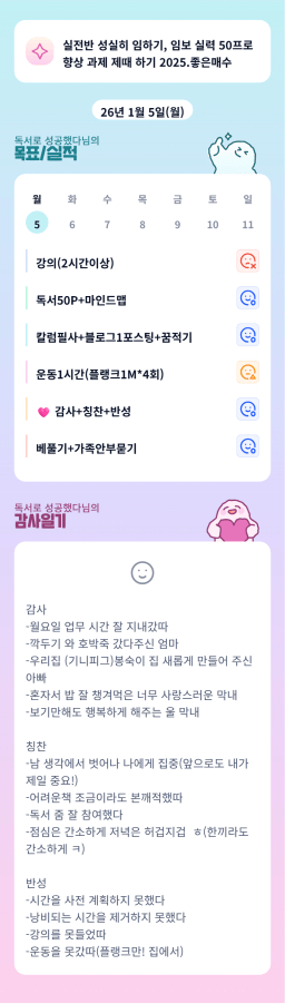 [실준반 72기 72개월 동안 앞마당 5️⃣0️⃣개 가능하조❤️ 꿈찾자] 26.1.5 목실