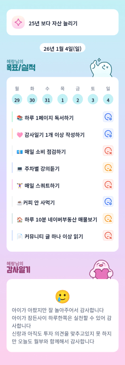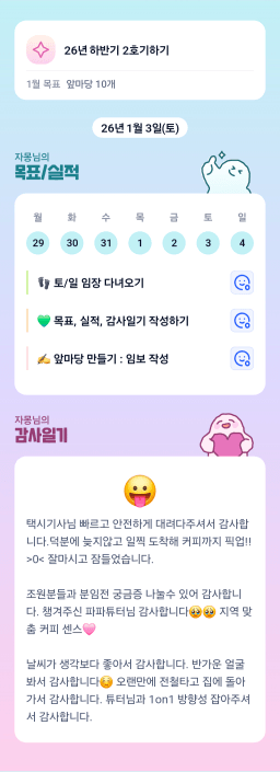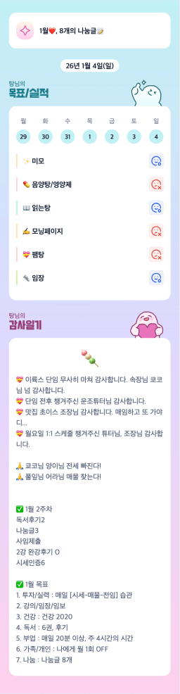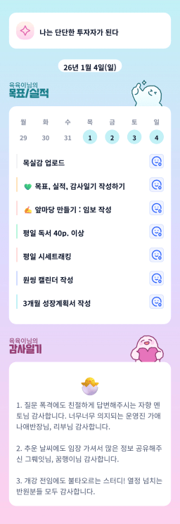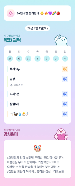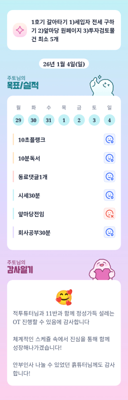 [지투실 27기 미요미우 튜터님과 2심전심 S2 지구별조이] 매일목실감 260103~260104