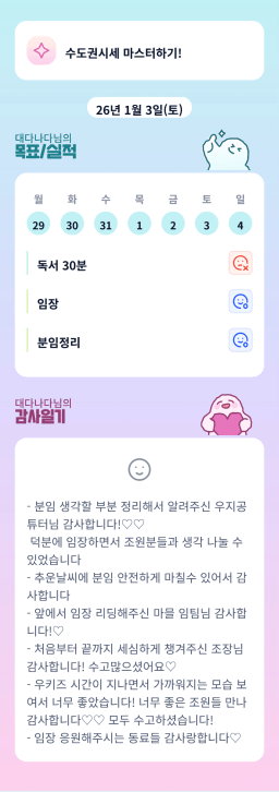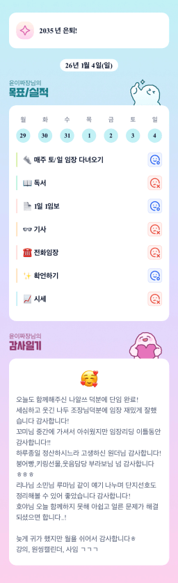 [지투 반나이튜터님과 원팀2면3단계성장할조_히히s] 260104 매일목실감