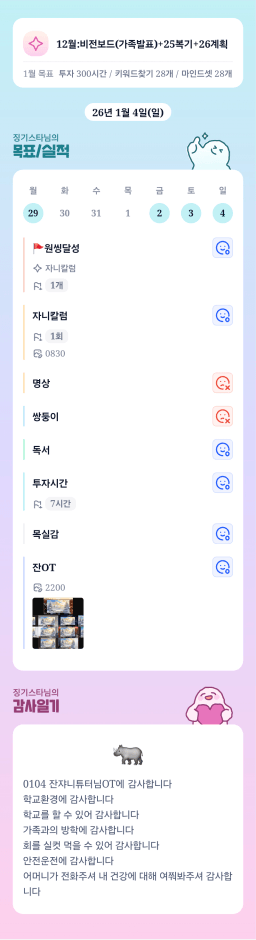 [지투27기 대흙력 만렙 18s 다랭구끼끼] 1월 4일 목실감