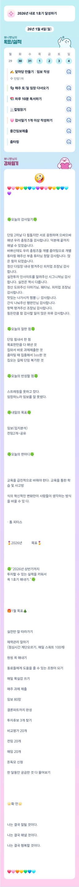 [지투27기 ㅈ1투에서 투자하고 ㅅ1포도링_성장구루] 1월4일 (일) 목실감 1주차 주간 통계