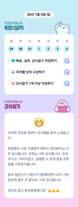 [지투실 27기 거봐 룰루랄라 튜터링 받고 그 집 4길 잘했지 풍월주인] 매일목실감 2026 0103-0104