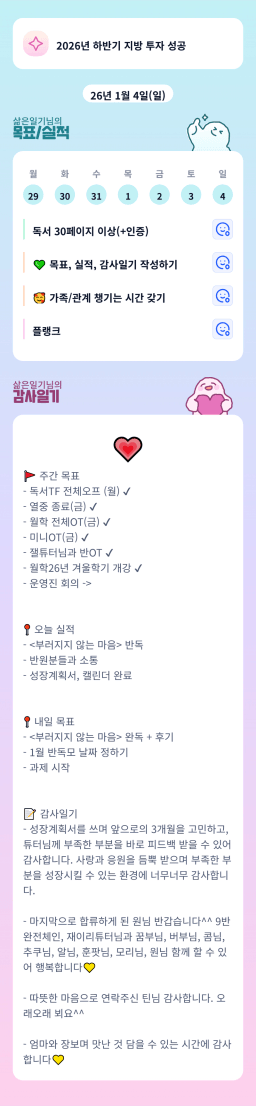 [지투27기 지금 2순간 아라메르 튜터님과 함께라면 4채도 거뜬하조 행동학기] 1/5 목실감