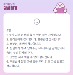 [에이스3반 마그온] 감사일기 01/04