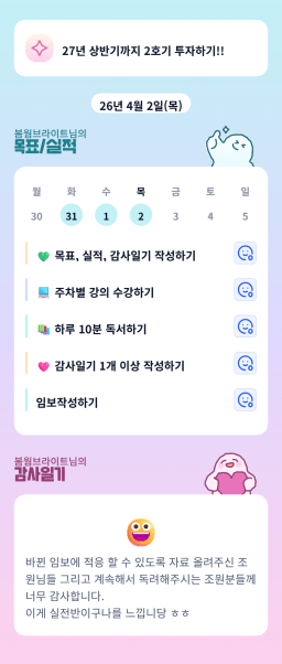 [봄웜브라이트] 목실감 누적 80일, 연속 4일 진행중