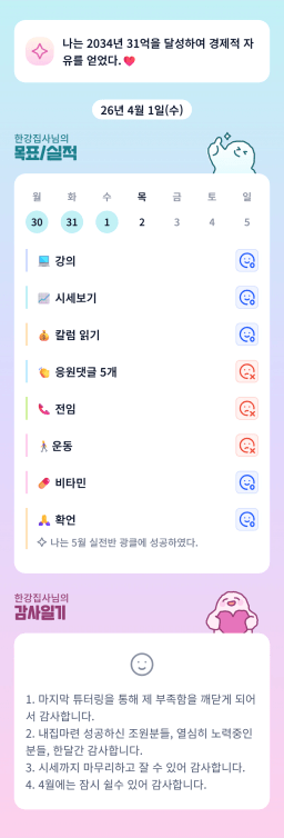[한강집사] 목실감 누적 229일, 연속 154일 진행중(4/1)