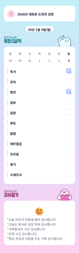 [행복한금붕이] 매일목실감 (20260104) D+254