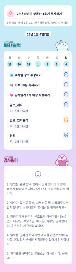 [지투 27기 딩동댕🎵 전국~~등기 ㅊ17ㅣ 자랑🎤 기린] 목실감 26.01.04