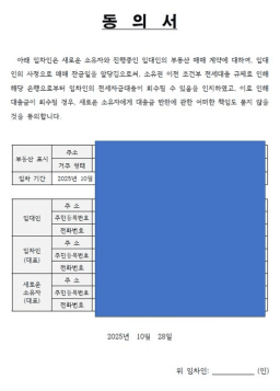 임차인에게 받을 동의서 봐주실 수 있을까요?