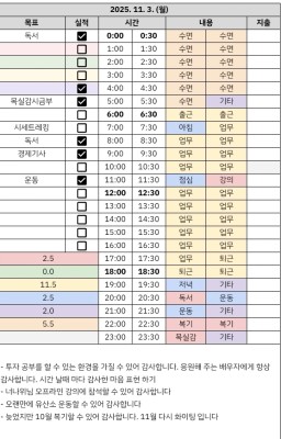 [매일목실감_깜냥] 10월31일-11월3일(월) & 11월4일(화)목표