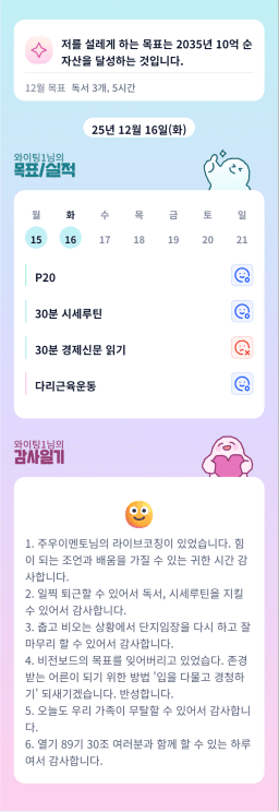 [열기반 집사구 89하여 30억 달성하조 와이팅1] 12월 16일 목실감