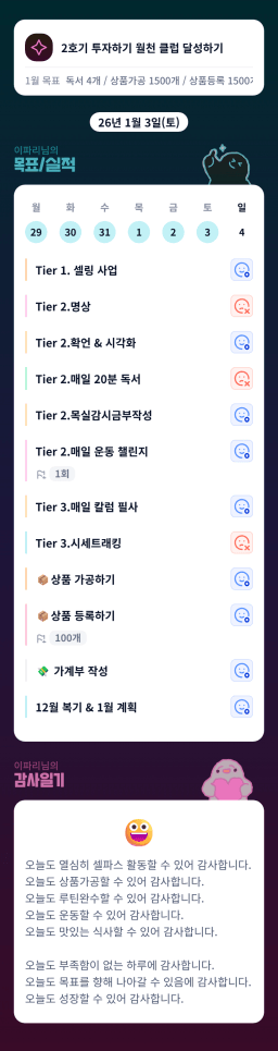 [DREAM에서 자산으로 1 9 조 새벽활동] 12/30~1/3 목살감