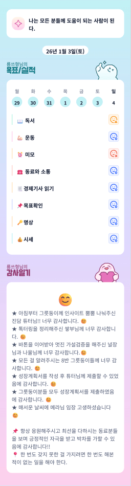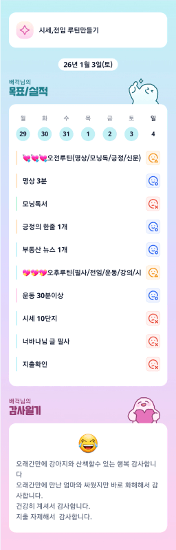 [월부학교 겨울학기 5만가지 단지 쓸어담는 프로 투자멩수 러버블리v] 26.1.4 목표, 1.3 감사일기 + 칭반