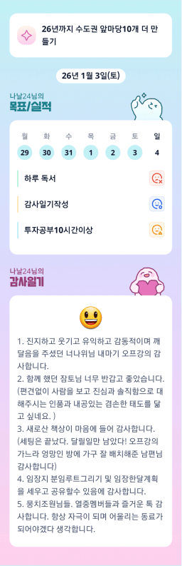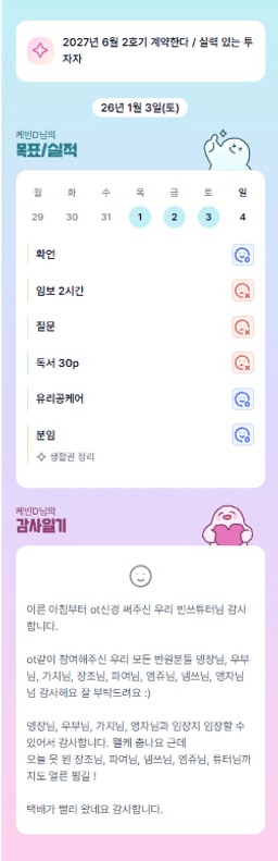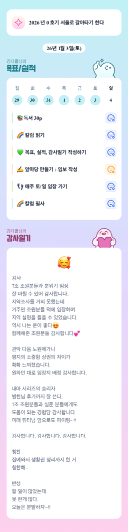 [내마실 엔젤빈쓰 튜터님과 함께하니 4주? 아니조~ 3주만에 내집마련 성공했조 김다올] 26.1.3.(토) 목실감