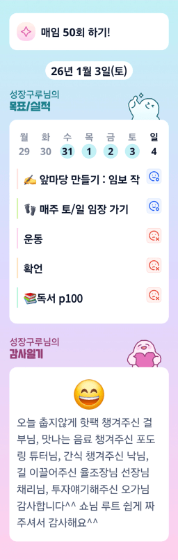 [지투27기 ㅈ1투에서 투자하고 ㅅ1포도링_성장구루] 1월3일 토 목실감