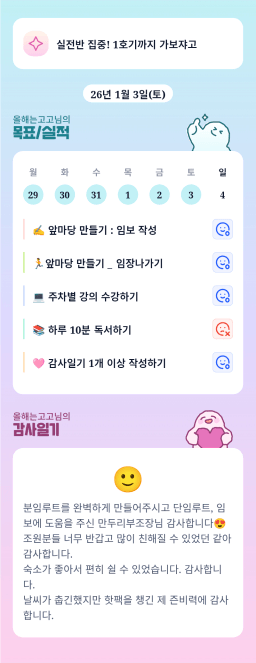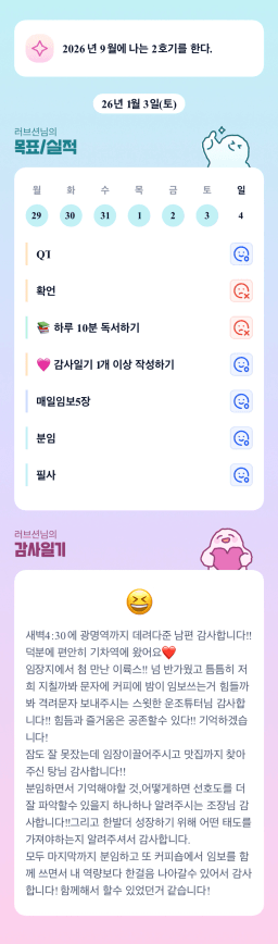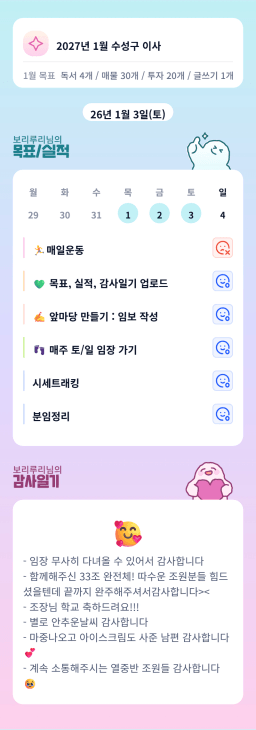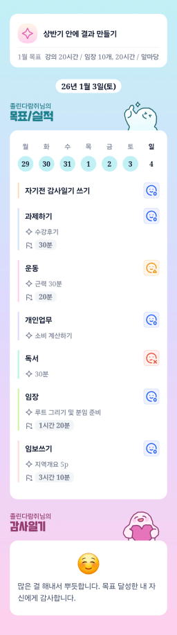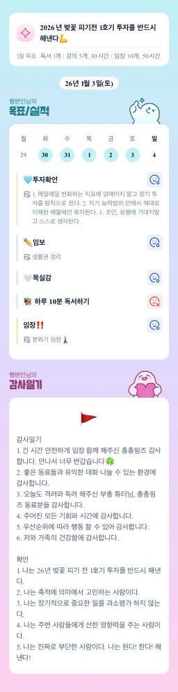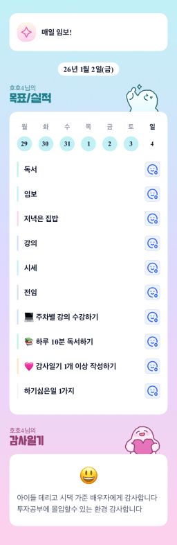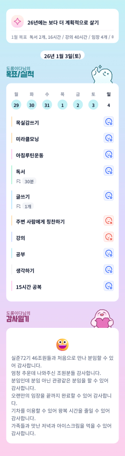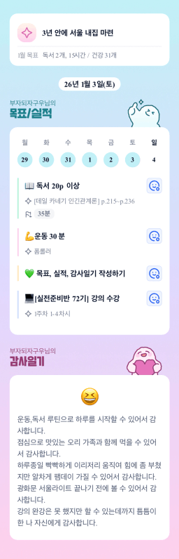 [성장함🧡] (2026.1.4.) DAY318 목표,실적,감사일기,시간가계부