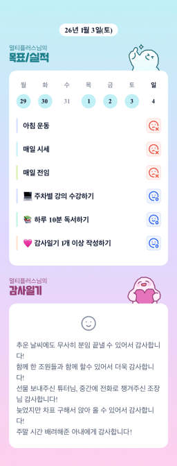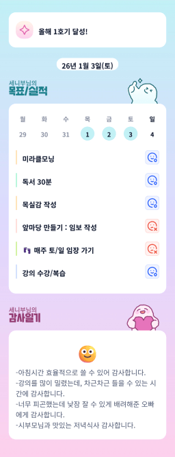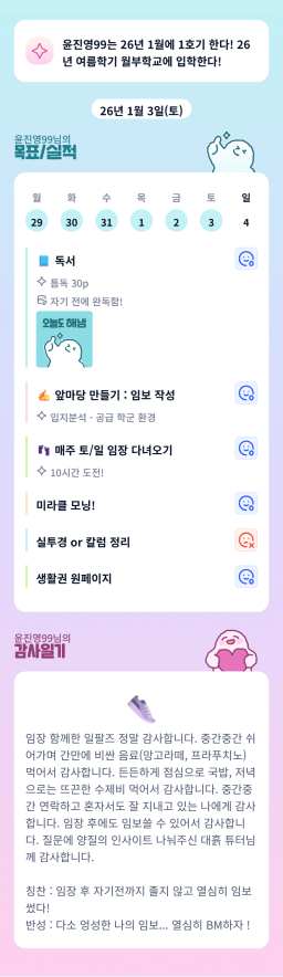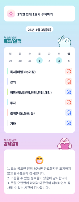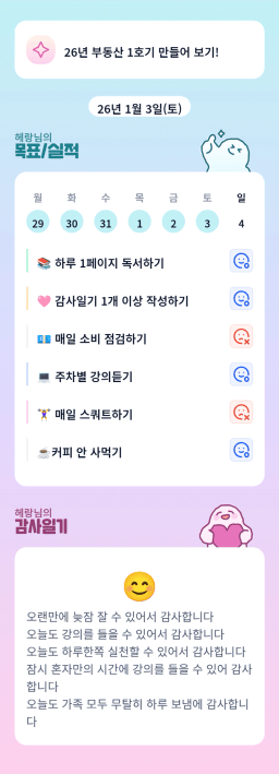 26년 1/4 목표,실적,감사일기,시간가계부[헤라클래스]