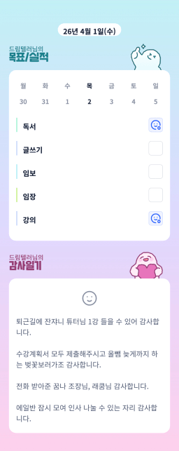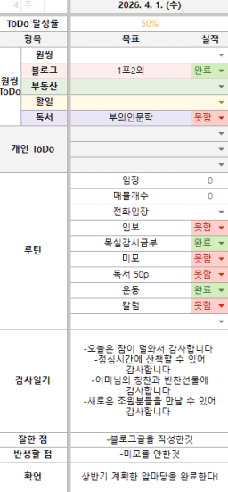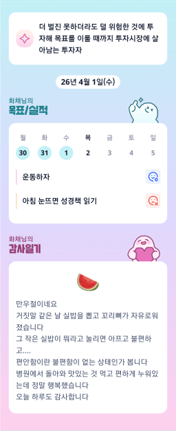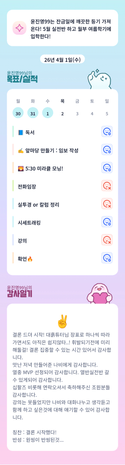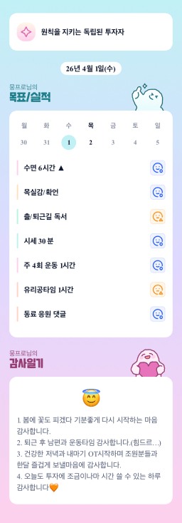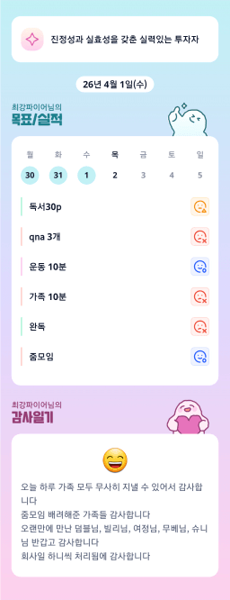 [윤진영99] 목실감 누적 169일, 연속 121일 진행중(0401)
