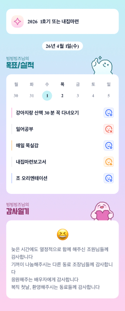 [빙빙빙즈] 목실감 누적 59일, 연속 1일 진행중_2026.04.01