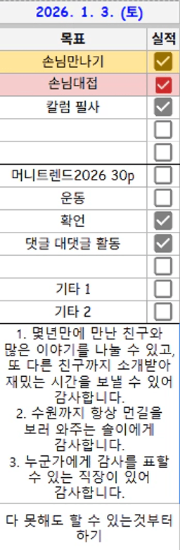 [어제보다 한걸음 더 성장하는 썸머선샤인] 1/2~1/3 목실감