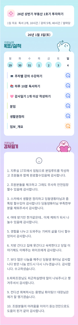 [지투 27기 딩동댕🎵 전국~~등기 ㅊ17ㅣ 자랑🎤 기린] 목실감 26.01.03