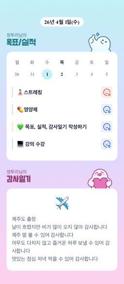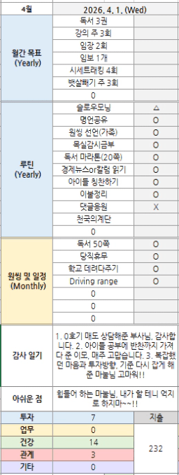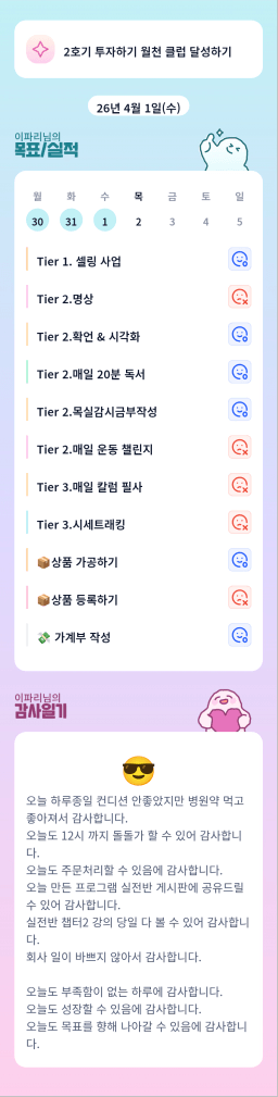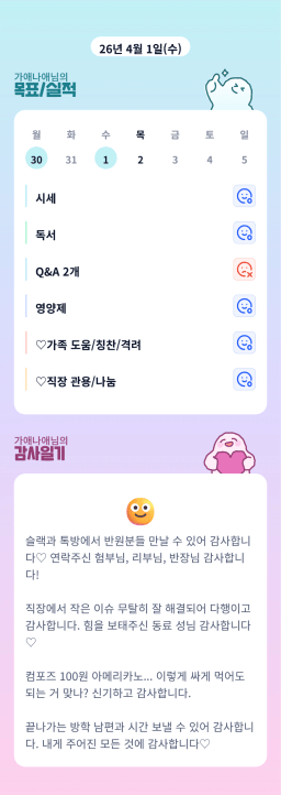 [러버블리v] 26.4.2 목표, 4.1 감사일기 + 칭반
