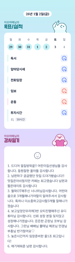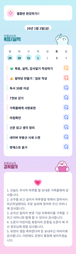 [지투실전 27기 쑤튜님과함께 🌱쑤욱쑤욱 성장하는 2린0ㅣ들 주니유니맘2]260102금]