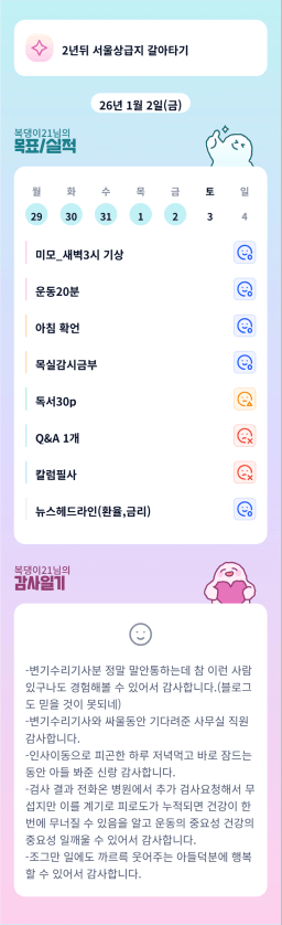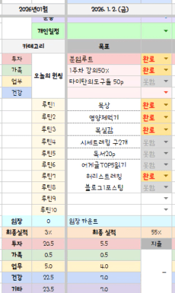 1/2 목표, 실적, 감사일기 [주시부]