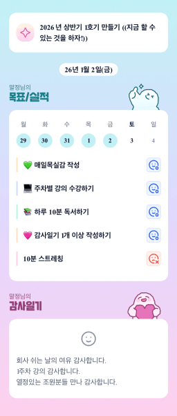 [지투실전 27기 쑤튜님과함께 🌱쑤욱쑤욱 성장하는 2린0ㅣ들 더나은라이프] 1/2목실감