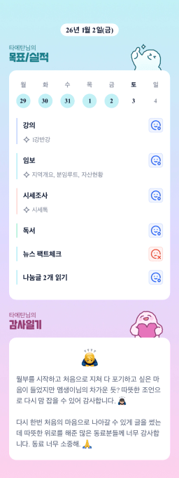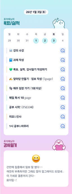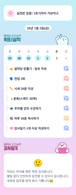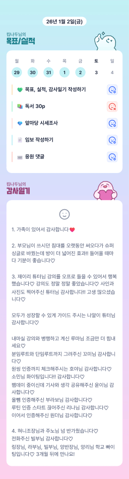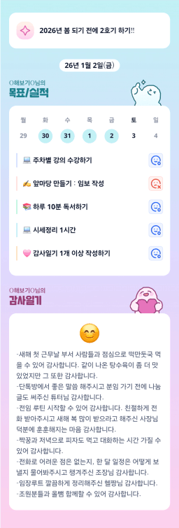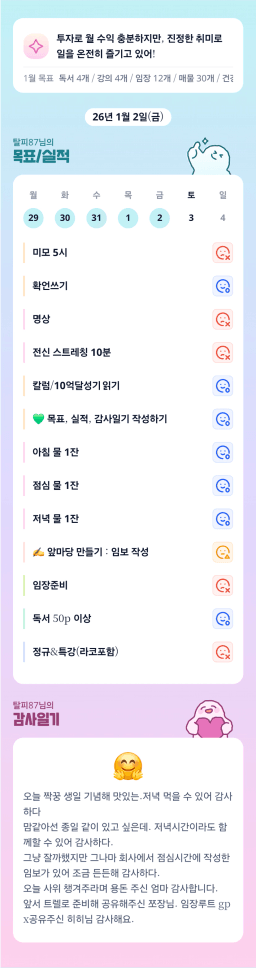 [지투실 27기 미요미우 튜터님과 2심전심 S2 지구별조이] 매일목실감 260101~260102