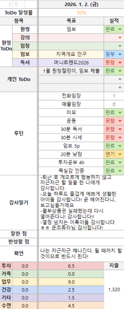 26년 1/3 목표,실적,감사일기,시간가계부[헤라클래스]
