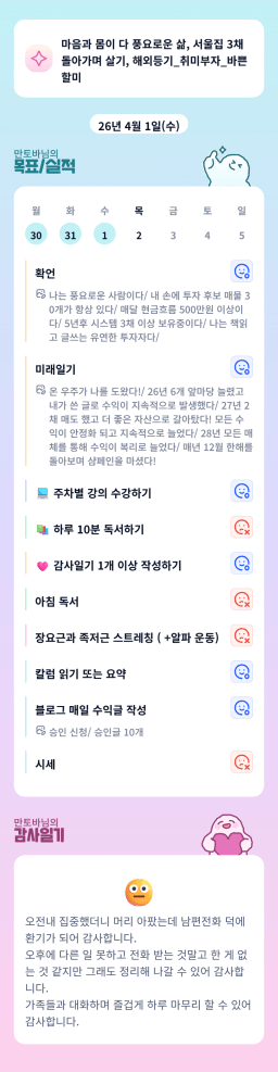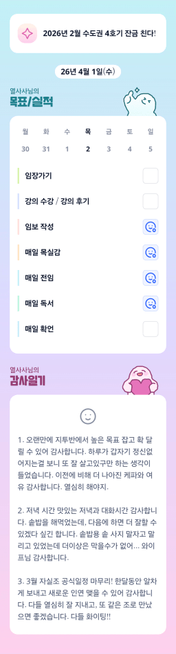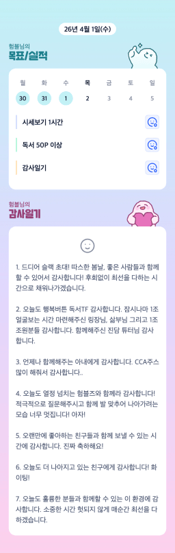 [에이스4반/독서TF 험블] 4월 1일(수) 감사일기