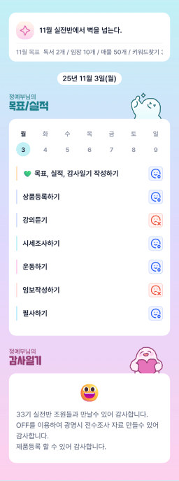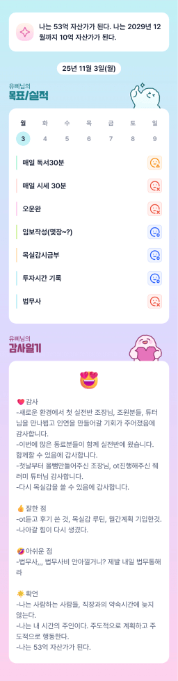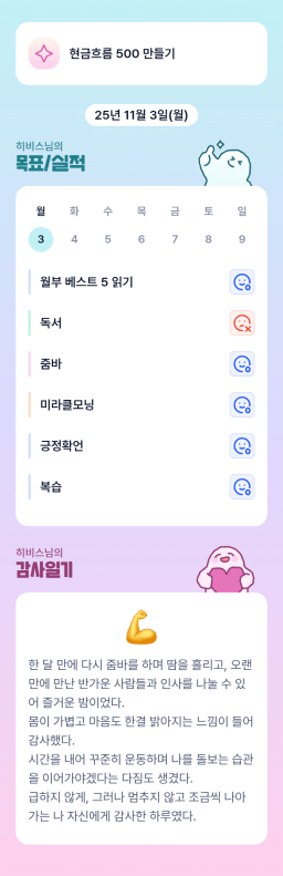 2025.11.3. 목표실적 #307 [너라는 위대함을 믿어 🩷 큄주술]