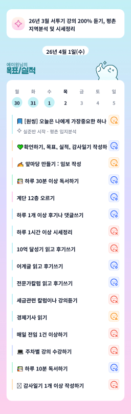 내집마련 실전반 목표/실적/감사일기 작성하기 (4주차)