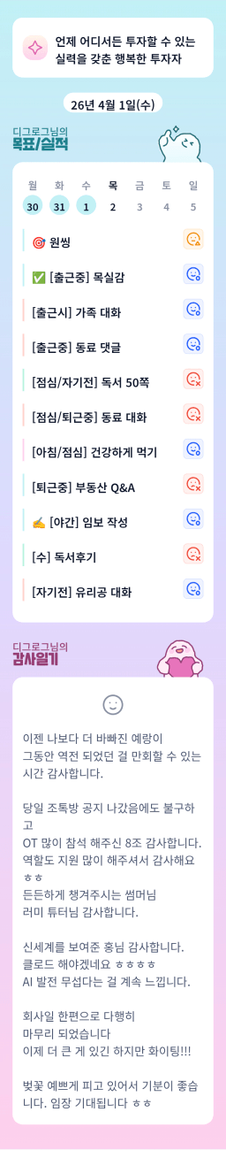 [디그로그] 4/1 목실감 누적 277일, 연속 257일 진행중