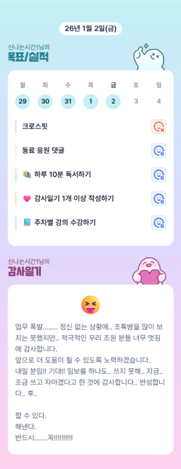 [스테디킴] 1월 2일 목실감, 시간가계부