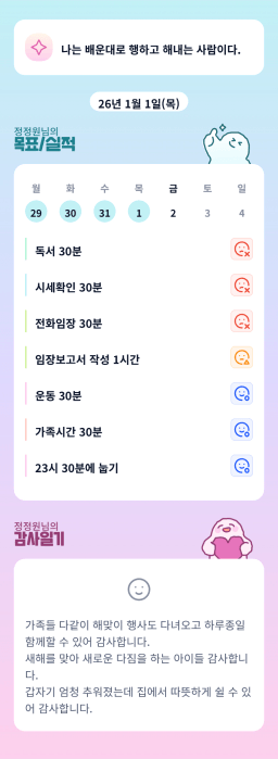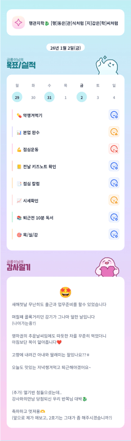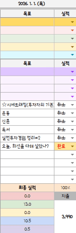 25년 12/31 ~ 26년 1/2 목표,실적,감사일기,시간가계부[헤라클래스]