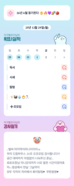[지구별조이] 매일목실감 251229~251231
