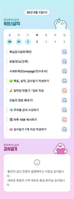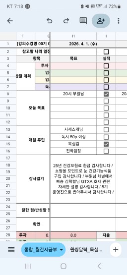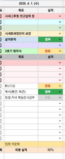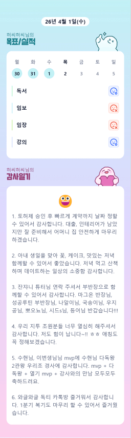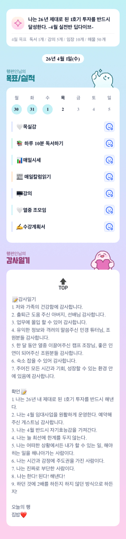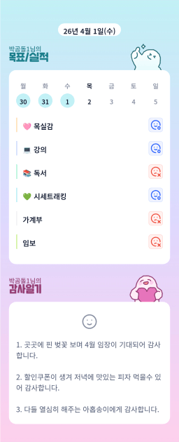 [정의] 2026년 4월 2일 목표, 실적, 감사일기