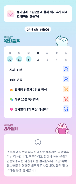 [지투28기 국송이 튜터님이 가꾼 아홉송2 꽃이 만7ㅐ했조 박곰돌1] 26-04-01 목실감