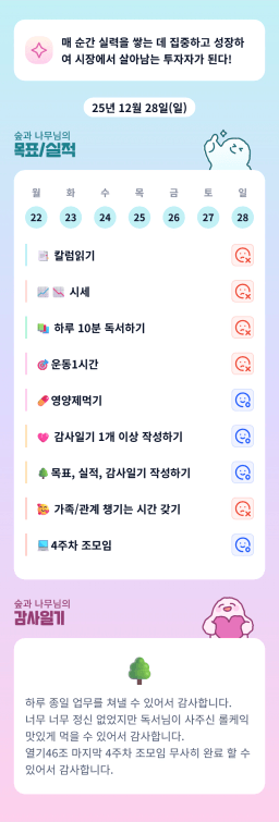 [열기89기 열심히 4고팔아 6십전에 은퇴하조_숲과 나무] [90일 습관 만들기_숲과 나무] 12/28 #89. 목실감