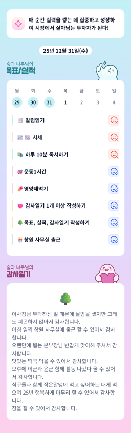 [열기89기 열심히 4고팔아 6십전에 은퇴하조_숲과 나무] 12/31 목실감