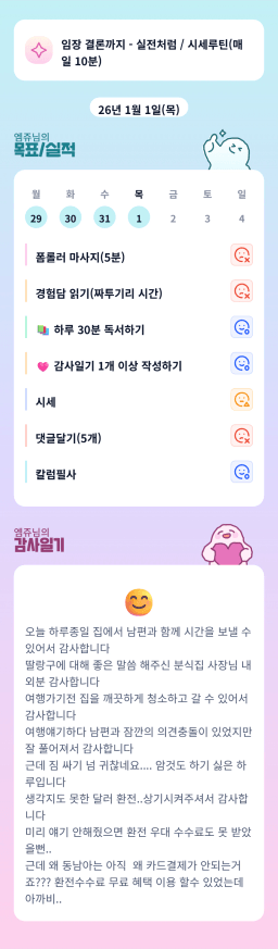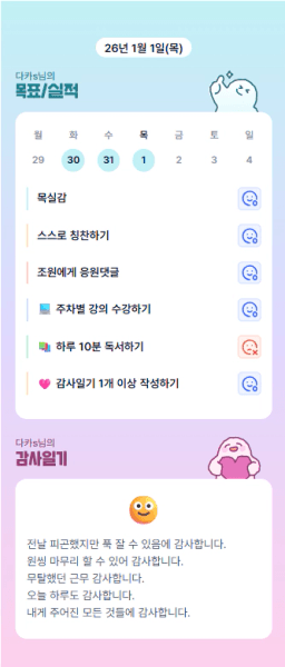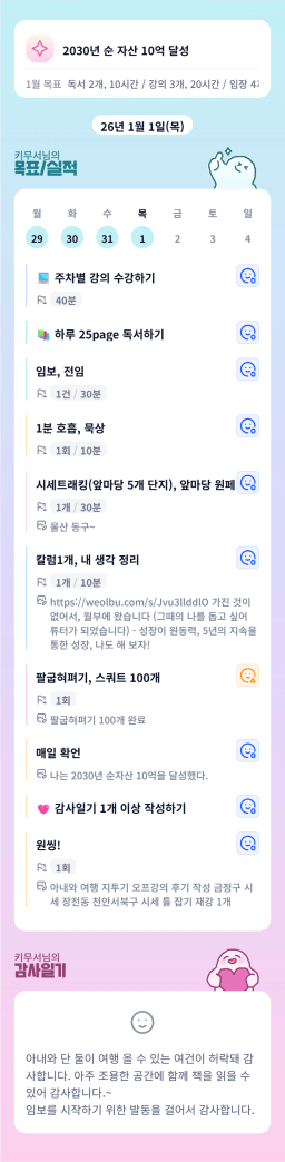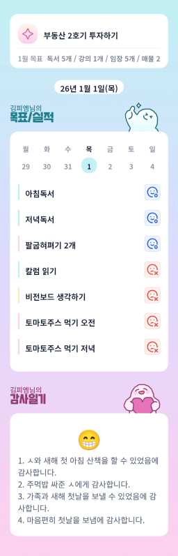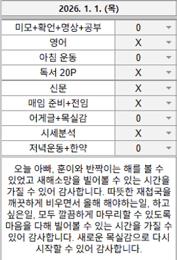 [정의] 2026년 1월 1일 목표, 실적, 감사일기