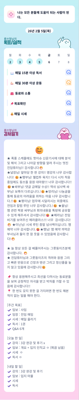 [실전34기 24시간 12개월 꾸준히 나알이 나아가조💙 더나은라이프] 2/3-5 목실감