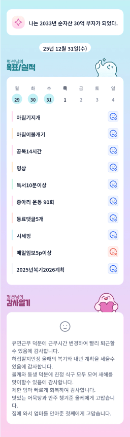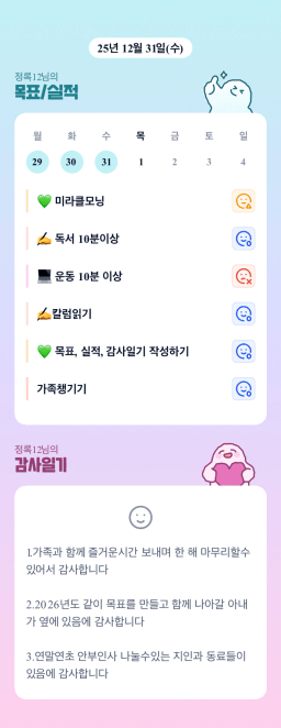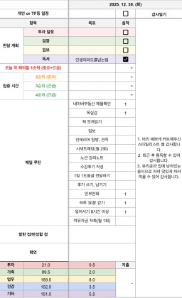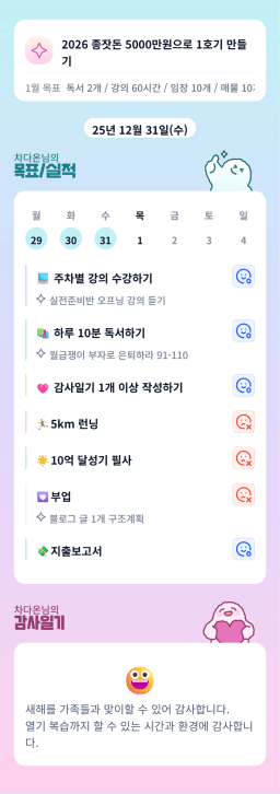 [별찌롱] 12/31 실적, 감사일기, 시간가계부 1/1 목표