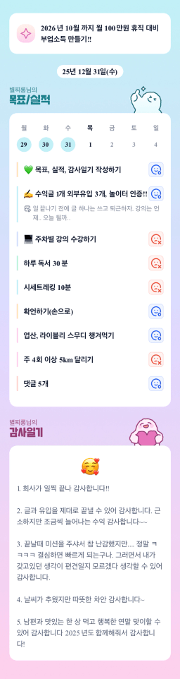 [지투실전 27기 쑤튜님과함께 🌱쑤욱쑤욱 성장하는 2린0ㅣ들 주니유니맘2]251231]