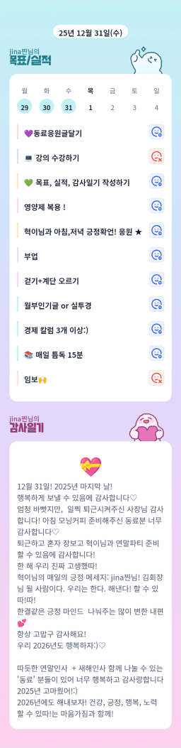 [열중48기 오늘 1페이지가 5년을 만들조🤍수수진] 20251229-1231 목실감시금부