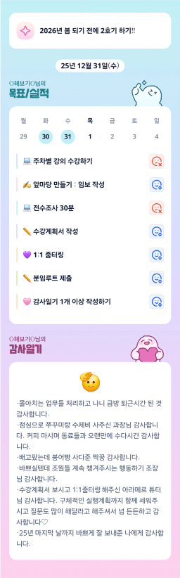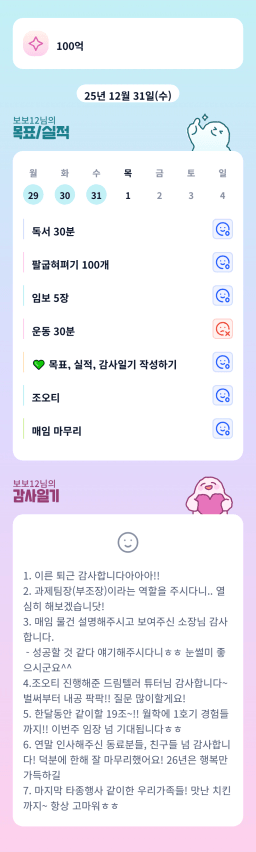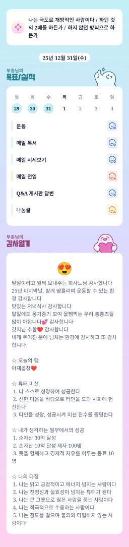 12/31(수) 목표실적 감사일기
