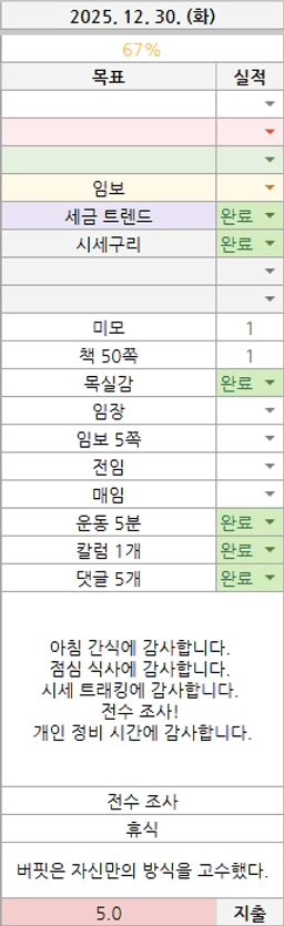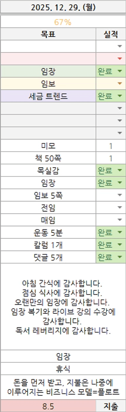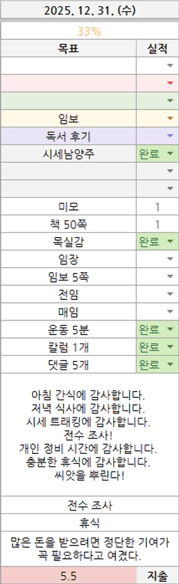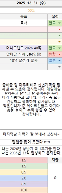 [나무해 월벗] #1341. 25.12.31 목표/실적